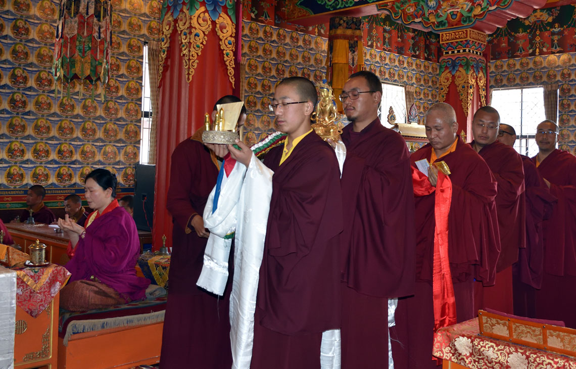 拓通桑殿秋林佛寺创建于三百多年前,因年久失修,正法的弘扬日渐衰微。该寺具信心的僧俗二众弟子表达供养之心,祈请仁波切与佛母的德行让佛寺再现光芒