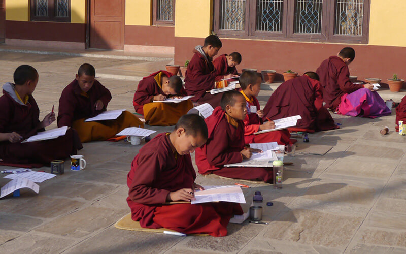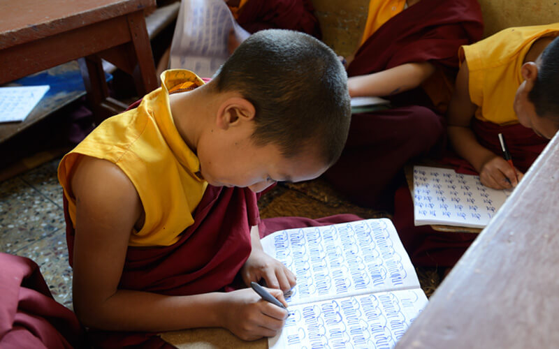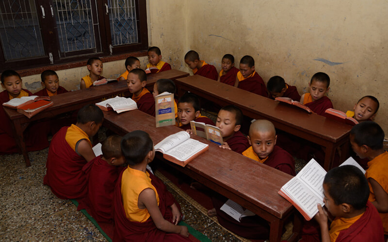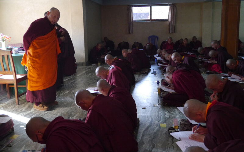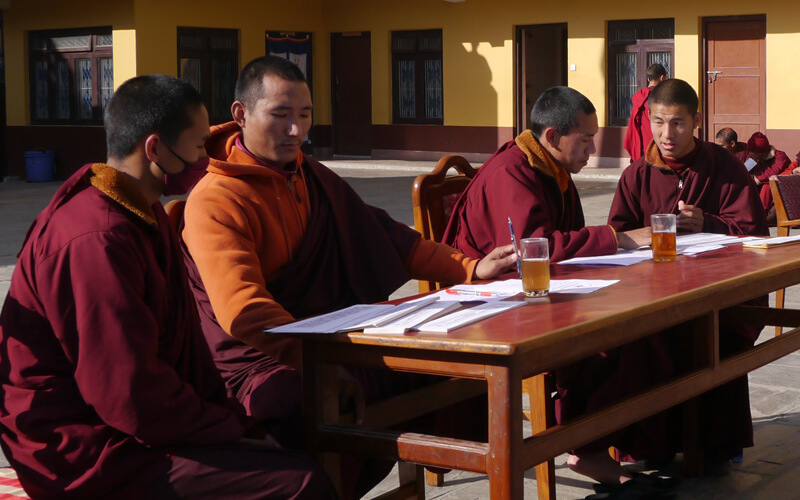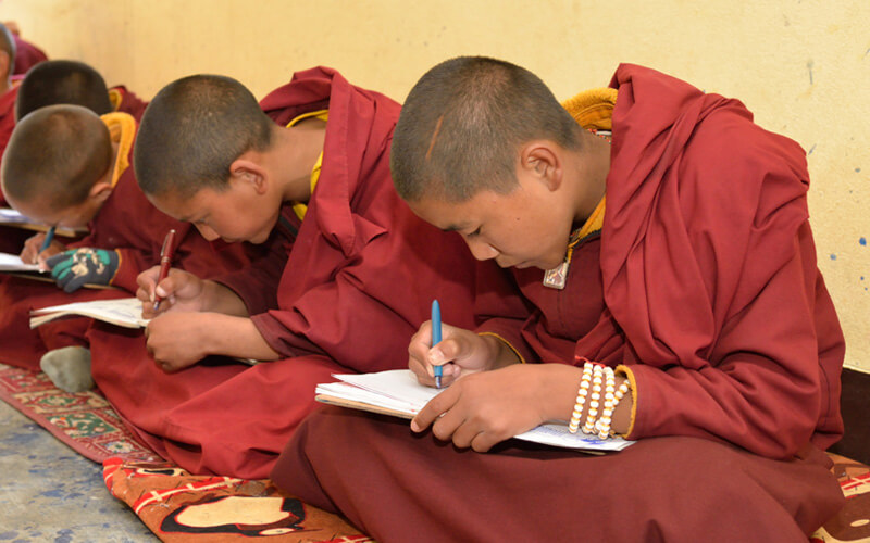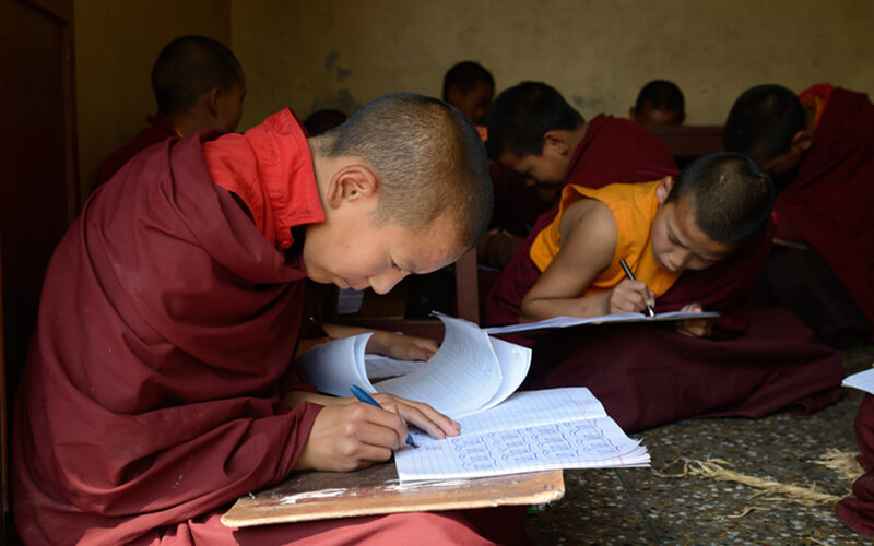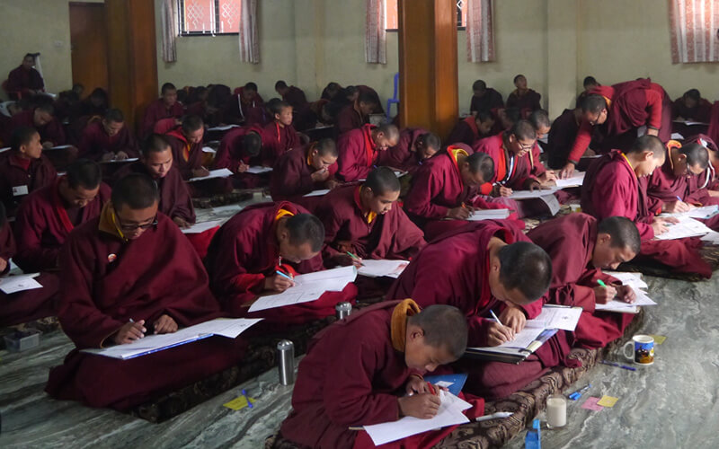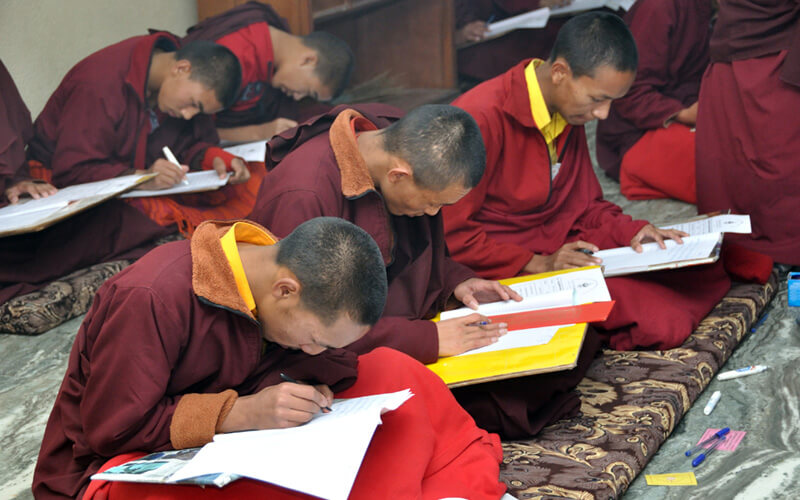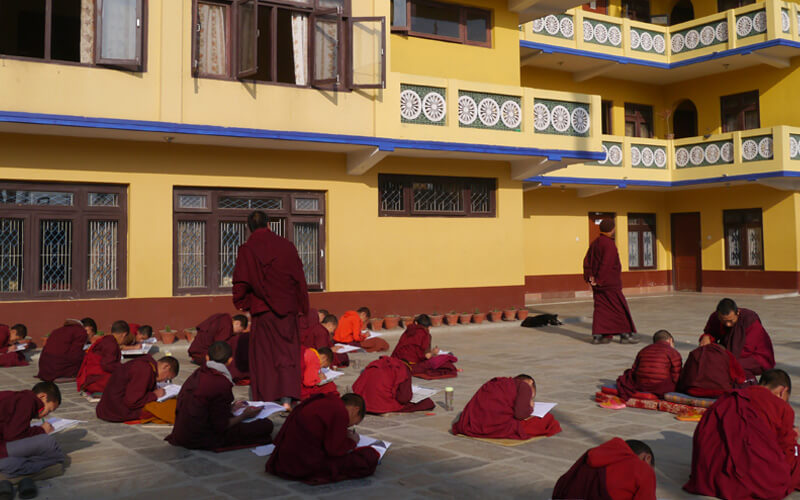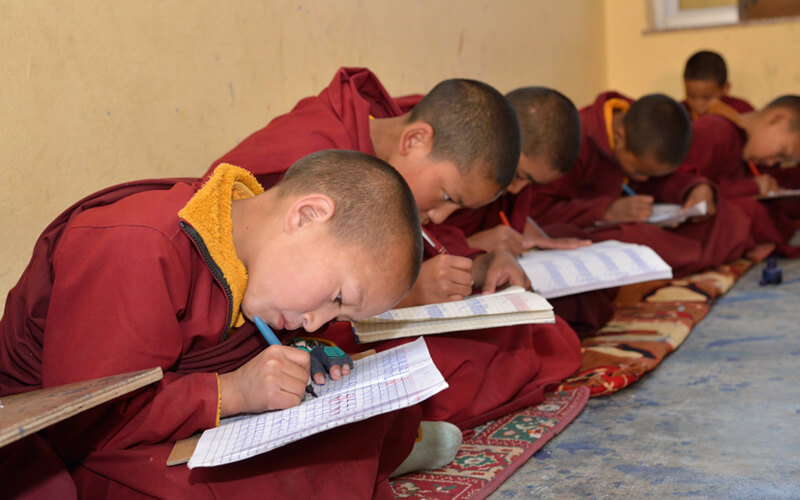佛学院教育课程中,“学前课程”为八年,学前教育期间,须完成藏文母语的听、说、读、写及坛城布置、朵玛制作、修法等基础内容; “义理课程”为九年,涵盖显、密乘义理教法并以敦珠法王传承为主要教法内容,循序渐进、考核严谨;“实修课程”为三年三个月又三天的闭关,总计有十二年。