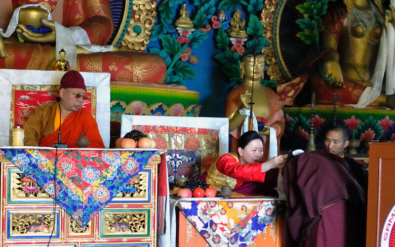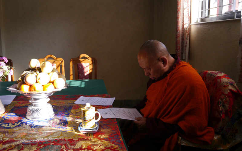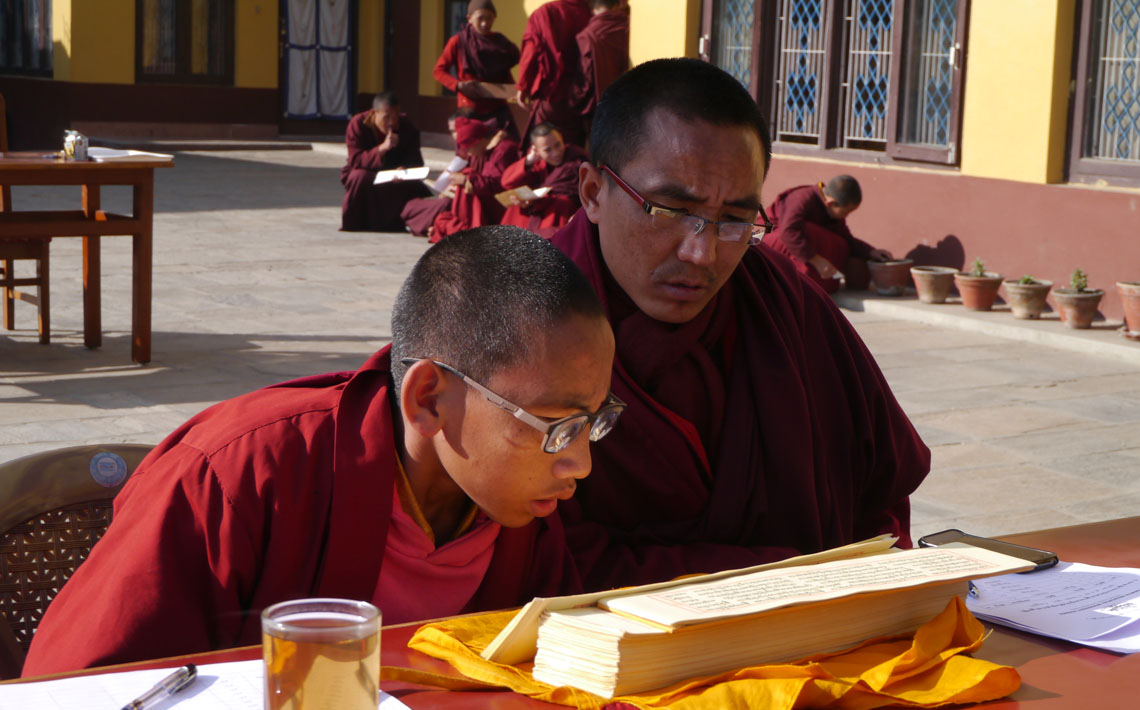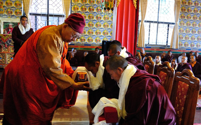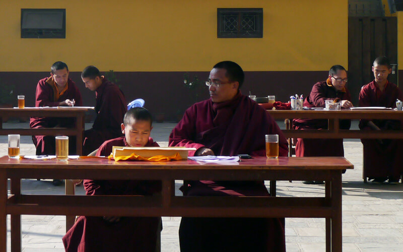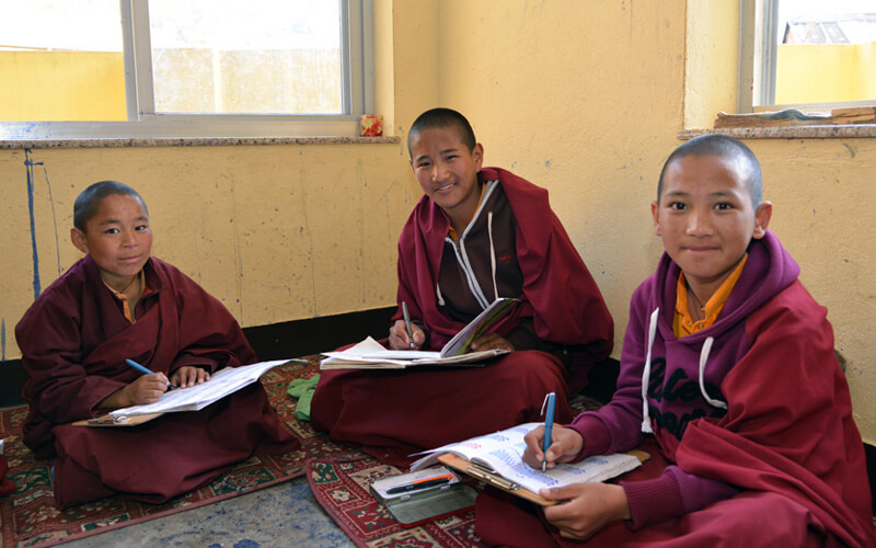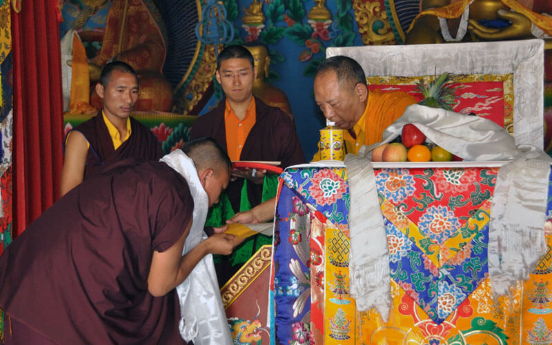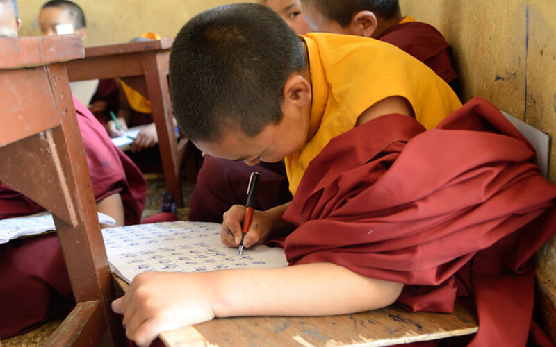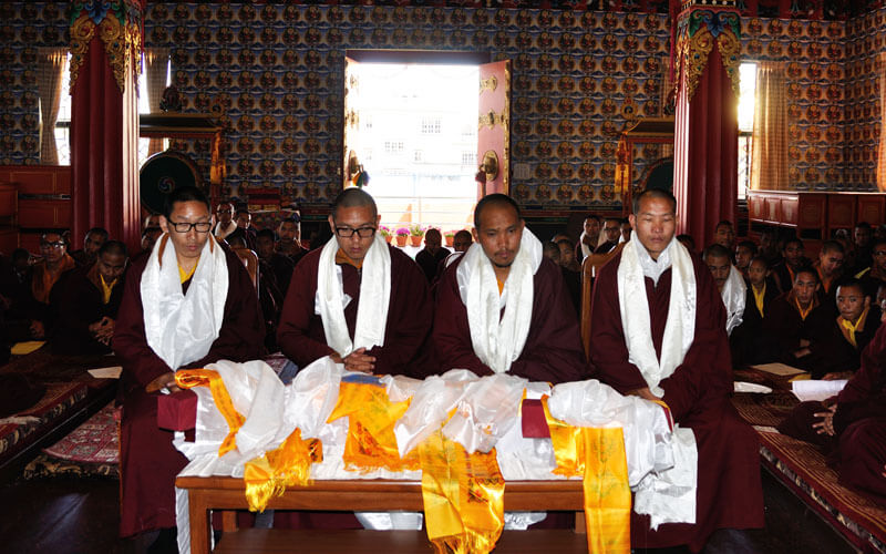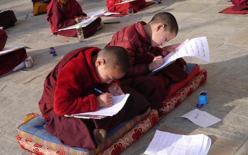 佛学院教育课程中,“学前课程”为八年,学前教育期间,须完成藏文母语的听、说、读、写及坛城布置、朵玛制作、修法等基础内容; “义理课程”为九年,涵盖显、密乘义理教法并以敦珠法王传承为主要教法内容,循序渐进、考核严谨;“实修课程”为三年三个月又三天的闭关,总计有十二年。