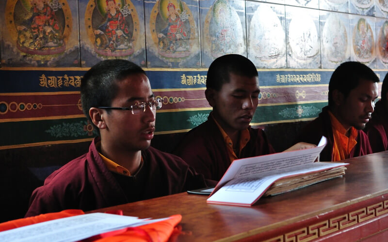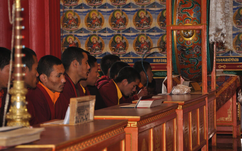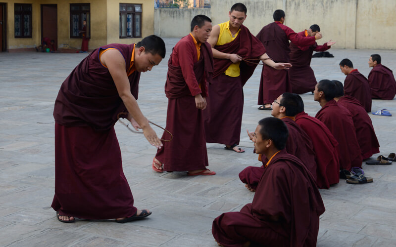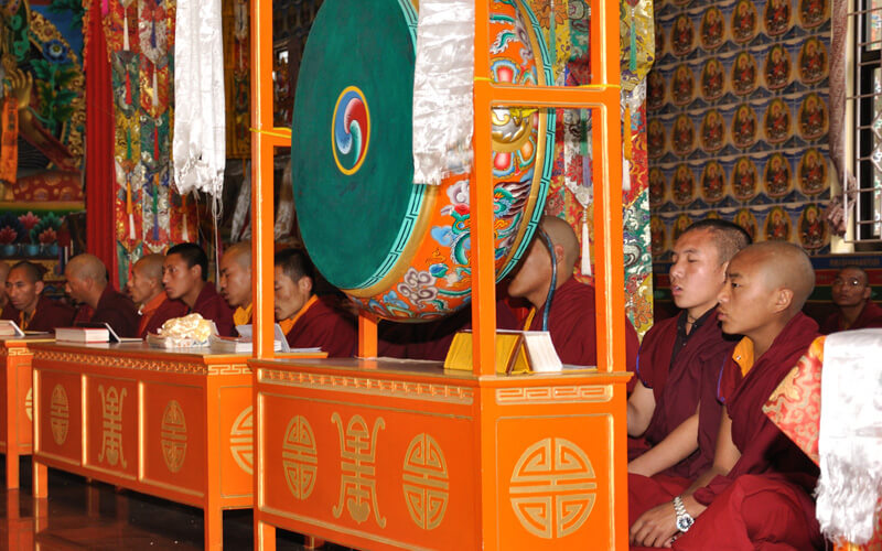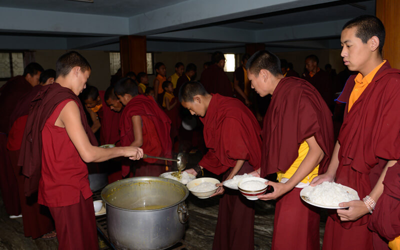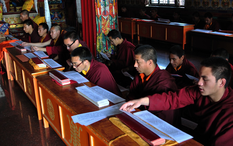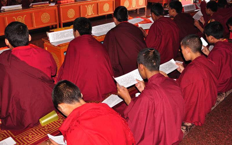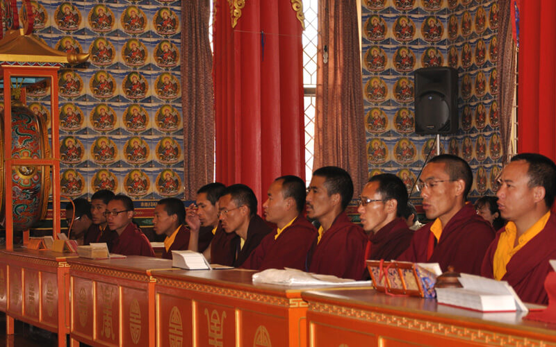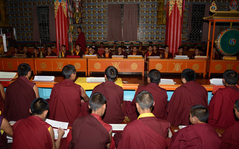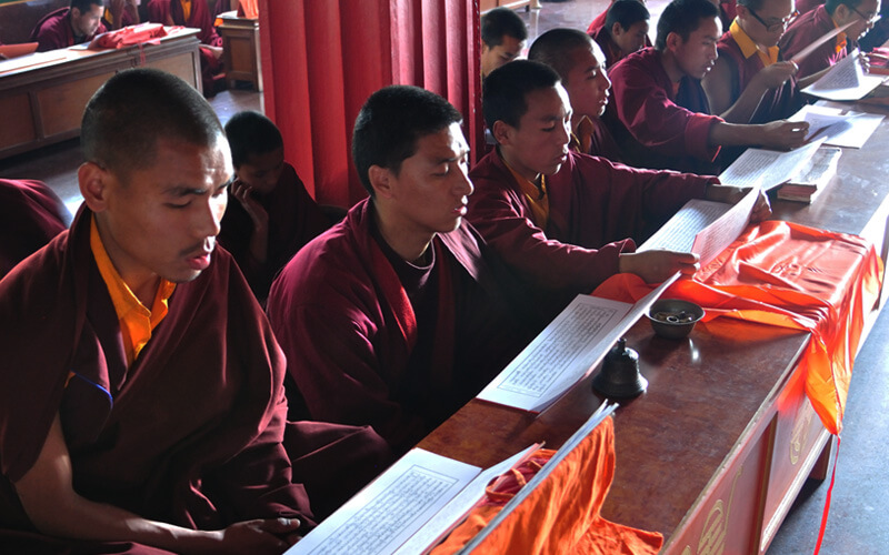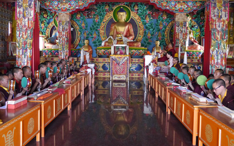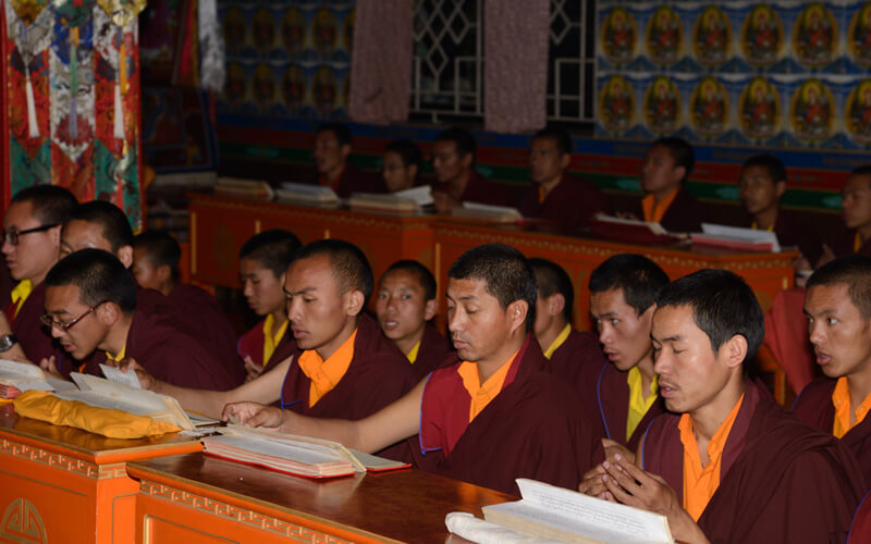 每周日是休假天,可以相互拜访师兄弟、会客或外出购买生活必需品,或清洗衣物等。可以做一些令心情宽愉但不能放逸无度的事,不能受不良行为的影响。 若遇讲经院创立纪念日、依怙法王敦珠仁波切、遍知隆千朗将巴和米潘仁波切的涅槃日都必须共修做荟供。每月初十和二十五日以及氐宿月和新年时,也要共修做荟供。除了参加集体或个人的经忏等重要活动外,应坚持参加以上法行。学僧若患重病或突然有急事无法参加法行时,皆应向掌堂师、班长、堪布或大师等请假,获得许可方得缺席。此外,若临时有重要法事,必须确实遵守临时通知的规定,这点必须谨记。