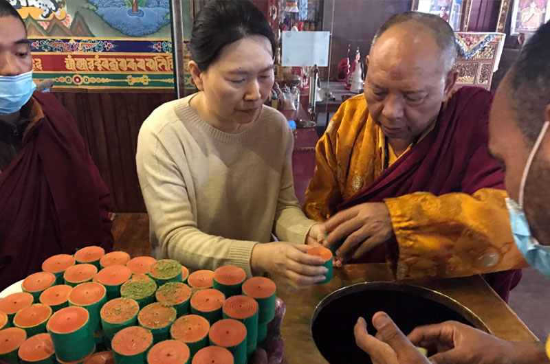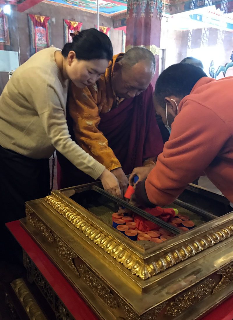 拓通桑殿秋林佛寺创建于三百多年前,因年久失修,正法的弘扬日渐衰微。该寺具信心的僧俗二众弟子表达供养之心,祈请仁波切与佛母的德行让佛寺再现光芒