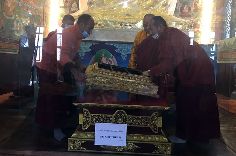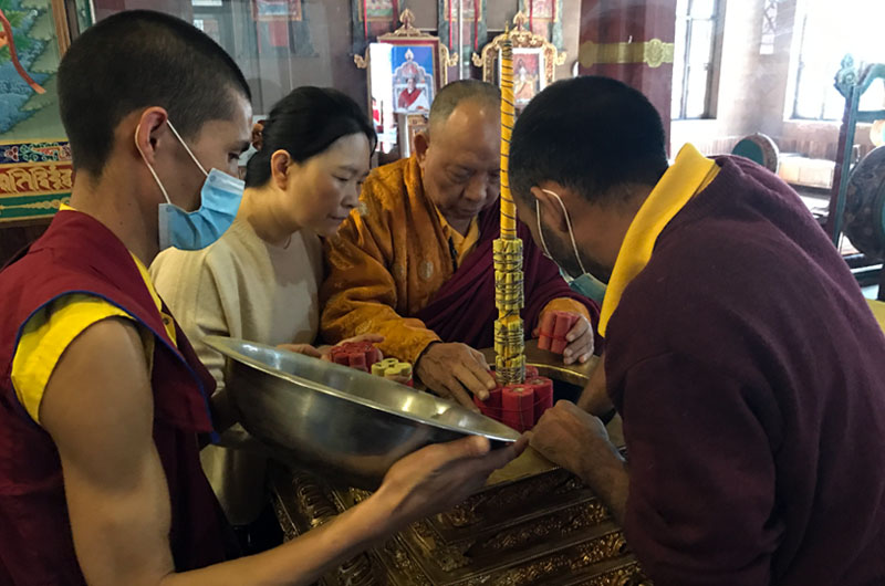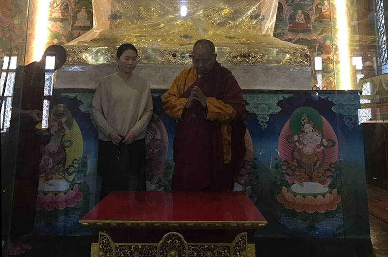 二世敦珠法王的佛母──仁津旺莫,于2014年8月6日,依二世敦珠法王之预言,将舍利身佛寺完全嘱托、交付予仁波切和佛母