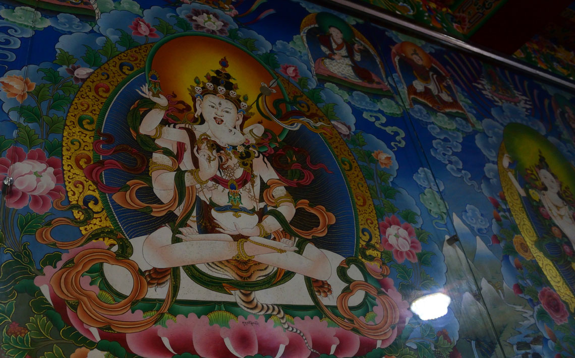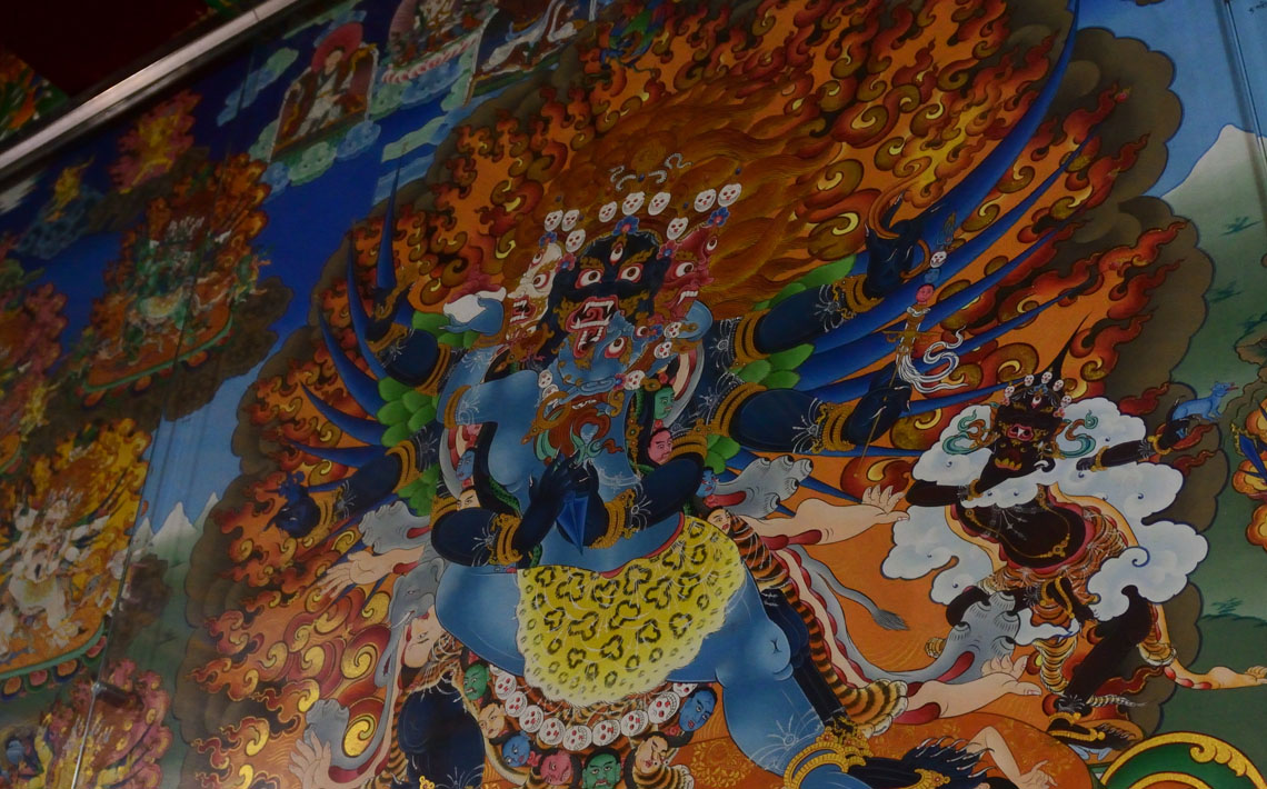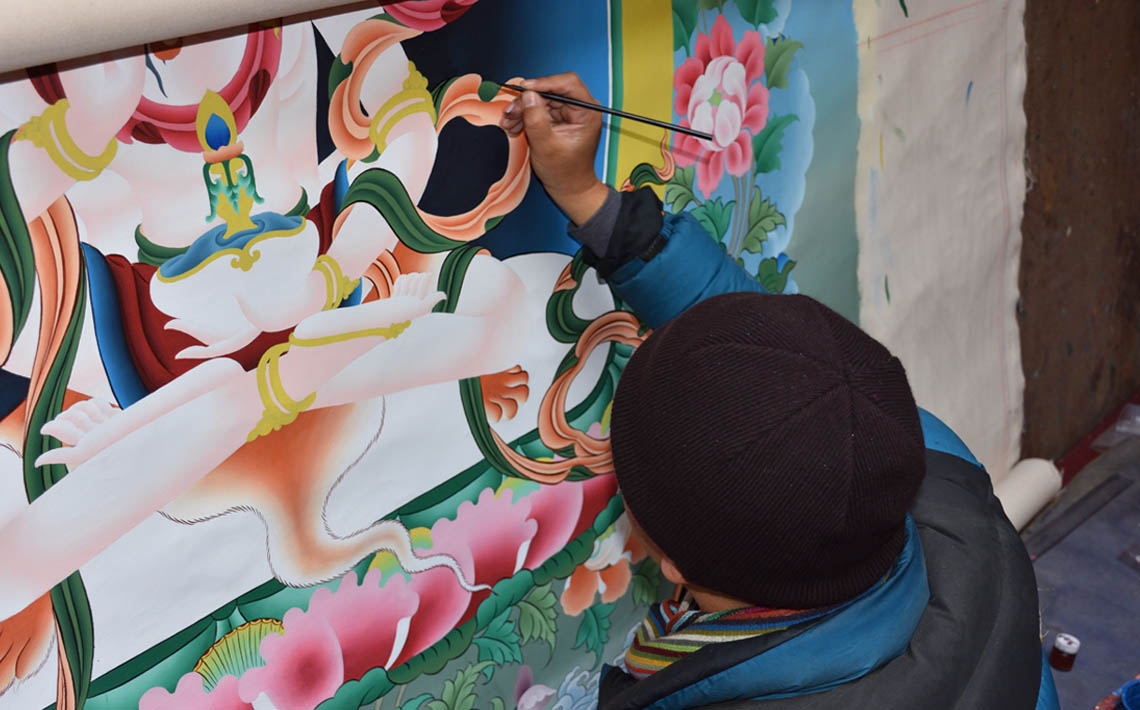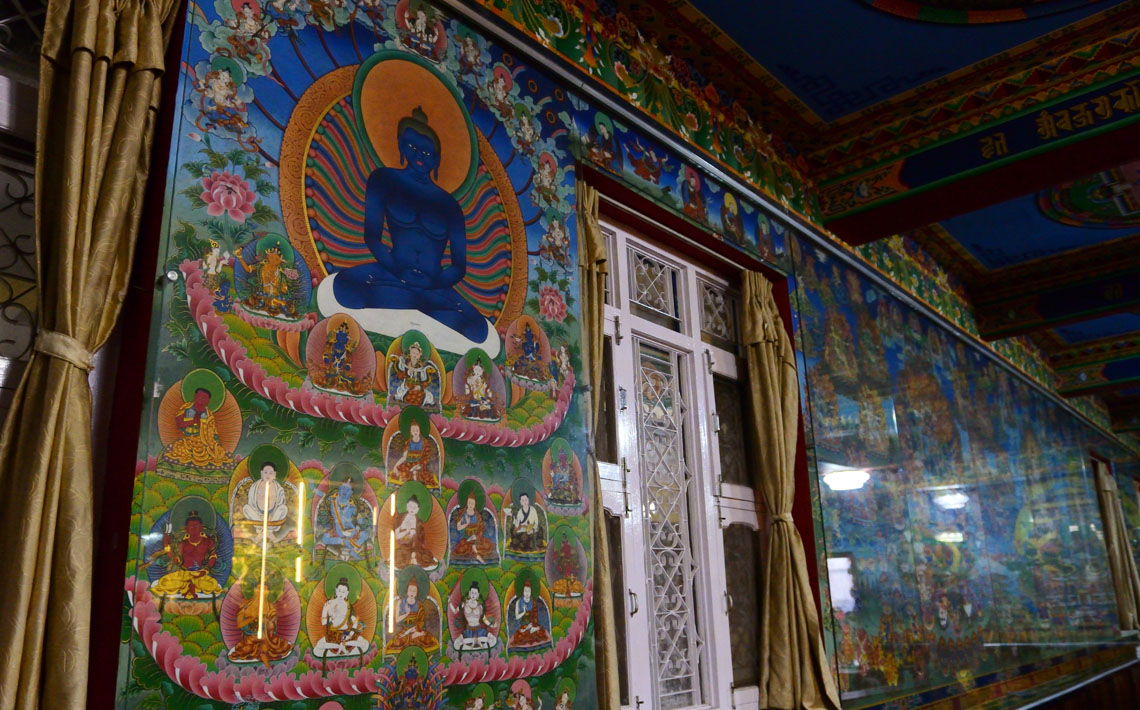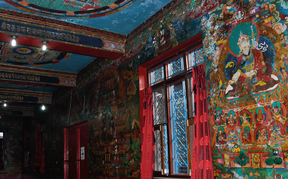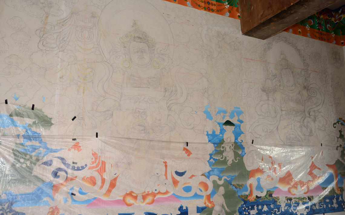 佛寺大殿内及舍利身塔周围的坛城壁画,则在旧有的画作之上,皆严谨地镶嵌特制板层加以保护,再裱以传统方法绘制的新壁画、唐卡等,以利保留原有坛城壁画的加持。