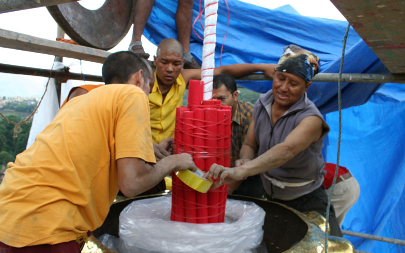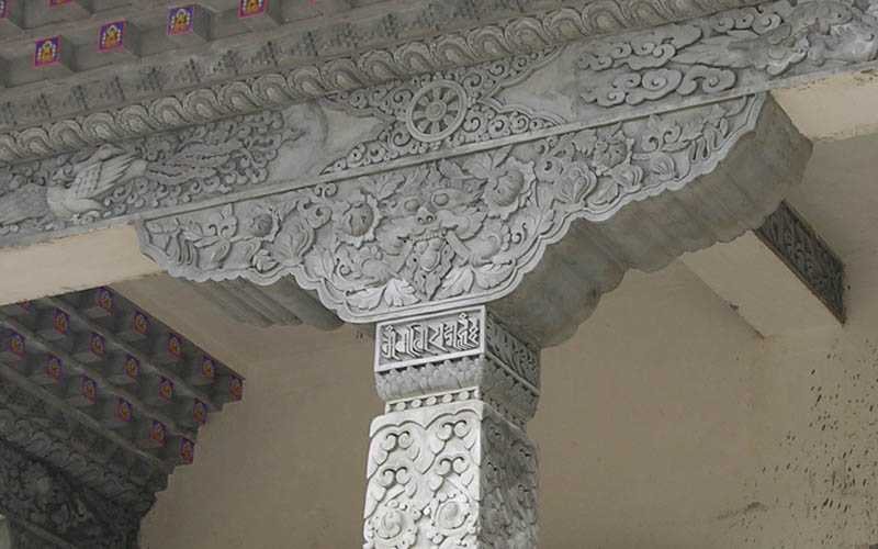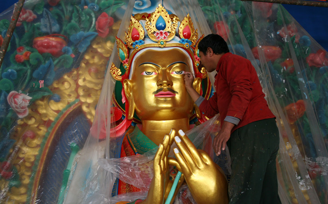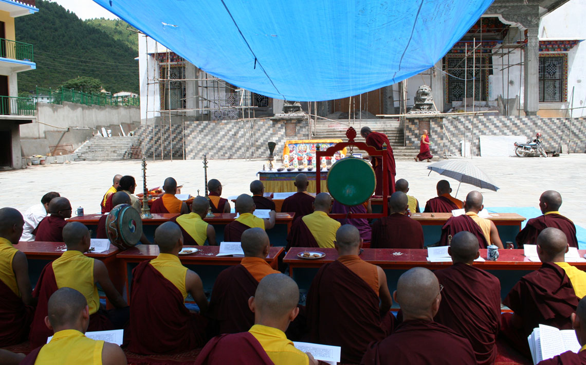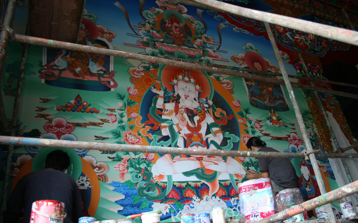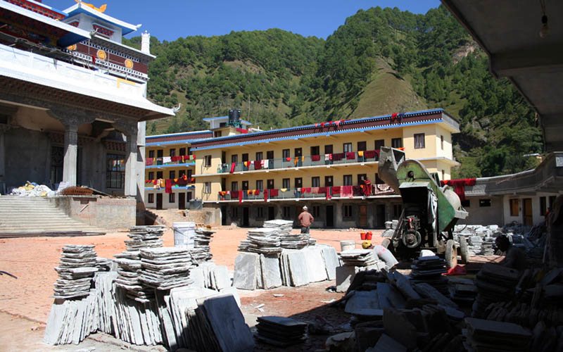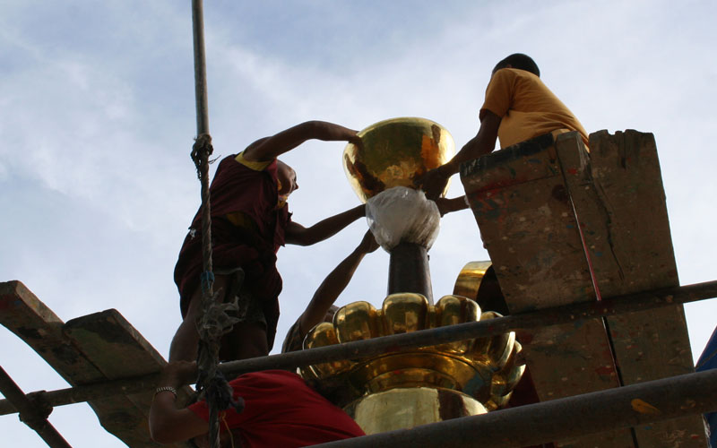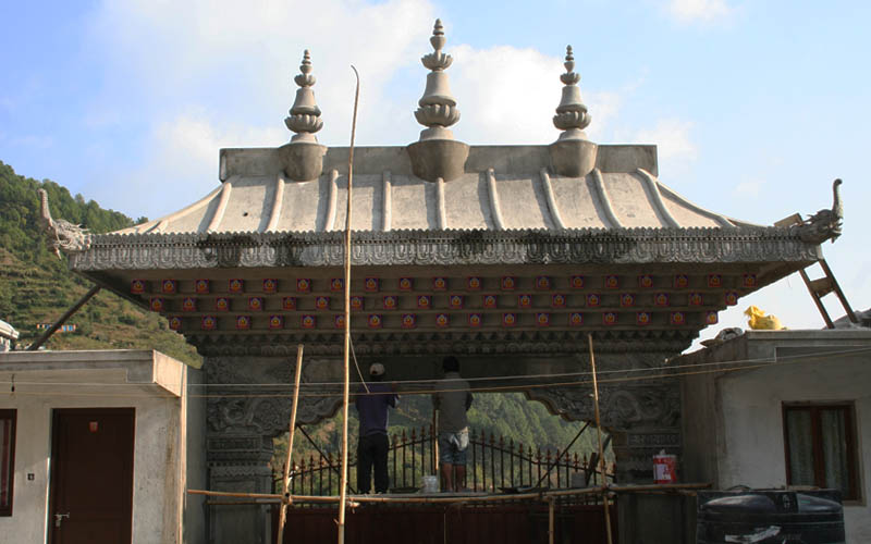 从觅地、设计、筹资、挑选建材、工匠,到历时数年的建筑工事,全是尊贵的仁波切和佛母不辞艰辛地亲自参与每个过程和细节,因有这般圆满的清净发心和行事,始呈现如法王 董瑟听列诺布仁波切亲喻首屈一指的圆满佛寺。 法王说道:此桑耶纪念佛寺对宁玛巴传承及世人而言,恩德等同莲师净土铜色吉祥山,是自然天成的摩尼宝,是圆满累积福慧资粮的殊胜所依。