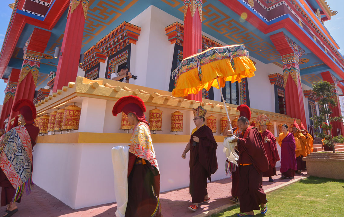 大恩德的上師耶謝桑波仁波切和貝瑪秋尊佛母,為了保存與發揚佛法,特別是敦珠新巖藏教法,接受當地的具信弟子Tan Sri Alex及Datuk Joanne夫婦之祈請,在檳城興建桑耶利生林佛寺