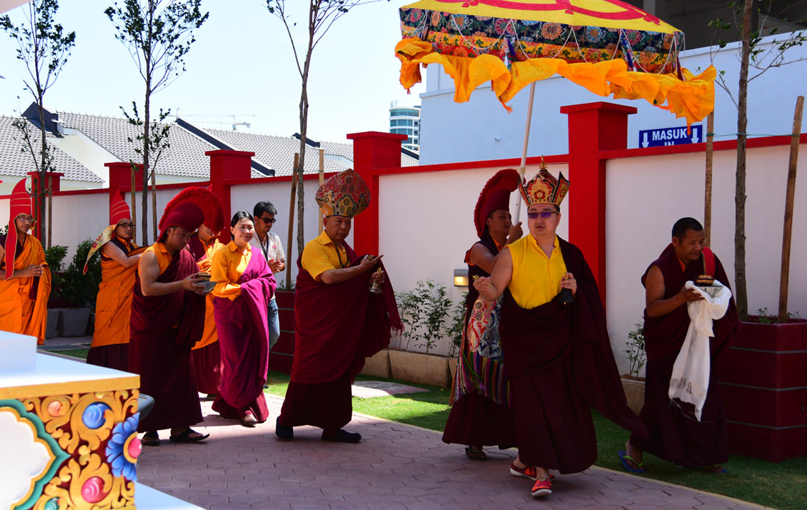 仁波切和佛母,為了保存與發揚佛法,特別是敦珠新巖藏教法,接受當地的具信弟子Tan Sri Alex及Datuk Joanne夫婦之祈請
