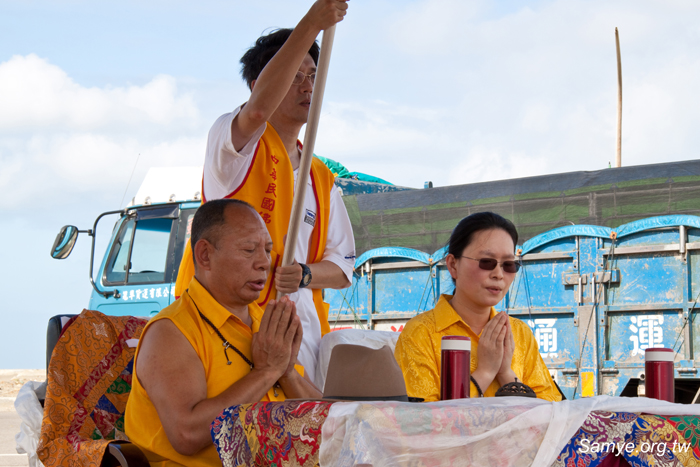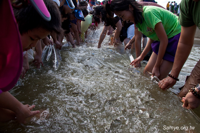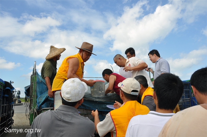 以这样的出发点,先念诵大家手上的放生法本,仪轨有前行、正行和后行三部分。前行的部分是:皈依及发菩提心。正行的部分是:特别祈请长寿佛加持,也就是念诵长寿佛的心咒。当大家念诵法本到长寿佛心咒时,我们就开始放生,放生完后,大家再聚集此处,一起作功德回向的后行。