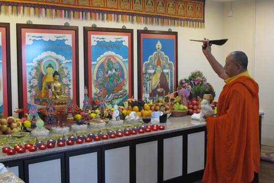 第二,“刹土圆满”。这个会所是具清净发心、信心的弟子们共同努力的成果;在这里,所看、所闻、所思……都是善的,就像佛净土的功德一样,不同于一般轮回众生所看、所闻、所思……都是非善的,这也是净土与轮回的差别。就像大家所知道、每个佛弟子都向往的极乐世界,它的功德就是:所看的是阿弥陀佛、所闻也是阿弥陀佛教法、所思的也是阿弥陀佛……一切都是善的。我们这个殊胜福田刹土也是如此,一进入佛堂,所看、所闻、所思都是佛,里面没有任何世俗、世间的瑕疵及污染,自己的家庭、工作、事业等烦恼、压力,在这里能够自然放下,具备了第二个“刹土圆满”的功德。
